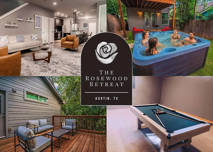 La Villa Hot Tub Deck Bbq Grill Patio Dog Friendly si trova nel quartiere East Austin di Austin, proprio vicino all'Eastside Community Church.